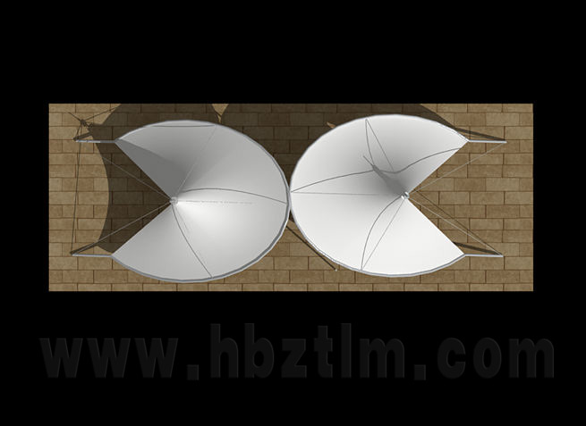該項(xiàng)目為永久式景觀遮陽(yáng)傘,其結(jié)構(gòu)為內(nèi)撐式冒頂膜...