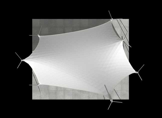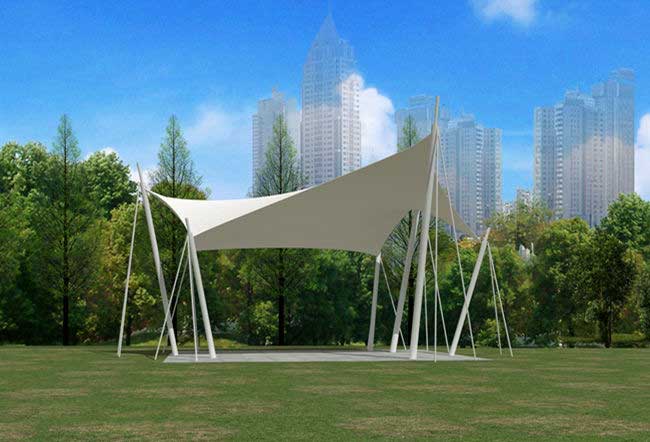 膜材采用PVDF國產或者進口建筑膜材、PTFE玻璃纖維建筑膜材、ETFE透明的永久性建筑膜材;自動放樣裁剪,高頻焊接,拉伸效果超強,曲線成型可千變萬化;膜材質保一般可達15-20年。