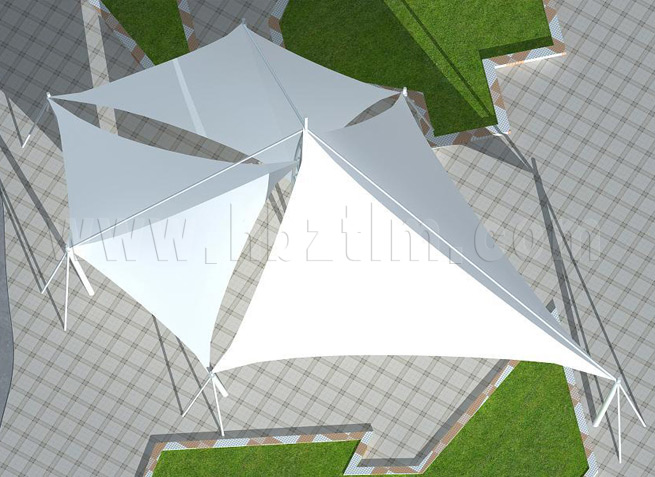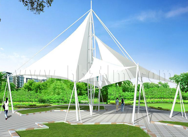 膜材采用PVDF國產(chǎn)或者進口建筑膜材、PTFE玻璃纖維建筑膜材、ETFE透明的永久性建筑膜材;自動放樣裁剪,高頻焊接,拉伸效果超強,曲線成型可千變?nèi)f化;膜材質保一般可達15-20年。