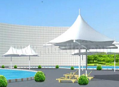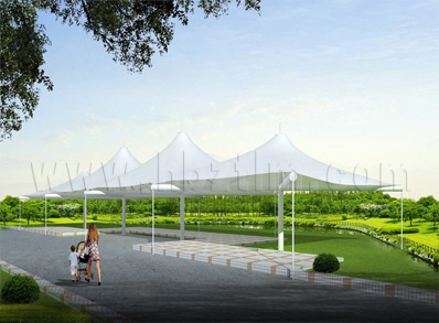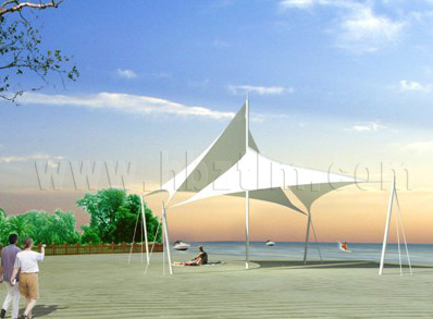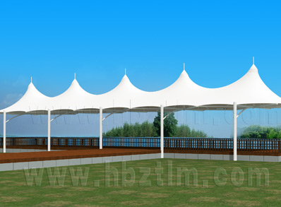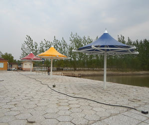 該項目為永久式景觀遮陽傘,其結(jié)構(gòu)為內(nèi)撐式冒頂膜...