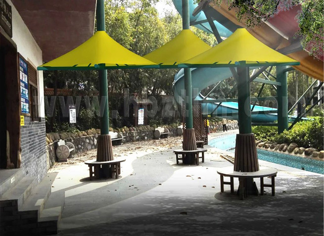 該項目為永久式景觀遮陽傘,其結構為內(nèi)撐式冒頂膜...