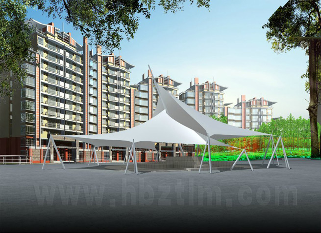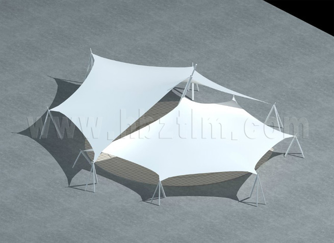 膜材采用PVDF國產(chǎn)或者進口建筑膜材、PTFE玻璃纖維建筑膜材、ETFE透明的永久性建筑膜材;自動放樣裁剪,高頻焊接,拉伸效果超強,曲線成型可千變萬化;膜材質保一般可達15-20年。