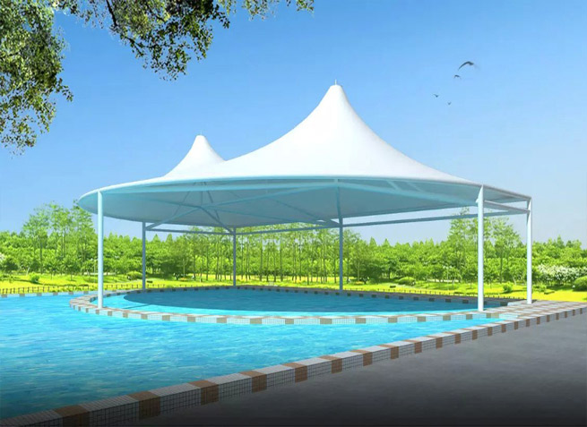 膜材采用PVDF國產(chǎn)或者進口建筑膜材、PTFE玻璃纖維建筑膜材、ETFE透明的永久性建筑膜材;自動放樣裁剪,高頻焊接,拉伸效果超強,曲線成型可千變?nèi)f化;膜材質(zhì)保一般可達15-20年。