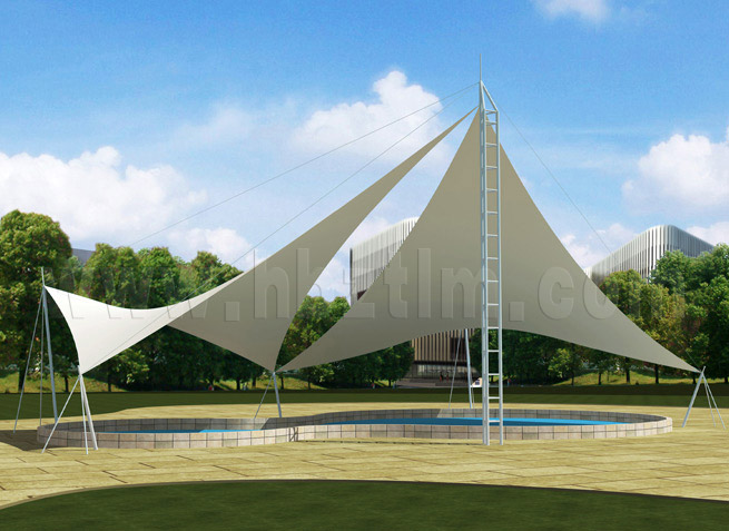 膜材采用PVDF國產(chǎn)或者進口建筑膜材、PTFE玻璃纖維建筑膜材、ETFE透明的永久性建筑膜材;自動放樣裁剪,高頻焊接,拉伸效果超強,曲線成型可千變?nèi)f化;膜材質(zhì)保一般可達15-20年。