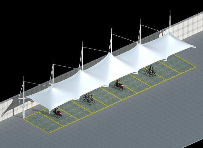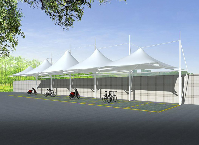 湖北美味源公司吊塔式圓管膜結構自行車車棚,本項...