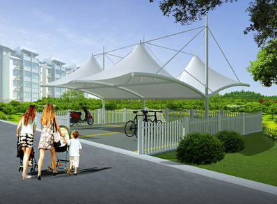 仙桃農(nóng)商銀行T型圓管膜結(jié)構(gòu)自行車(chē)棚,本項(xiàng)目采用...