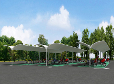 仙桃農(nóng)商銀行T型圓管膜結(jié)構(gòu)自行車棚,本項(xiàng)目采用...