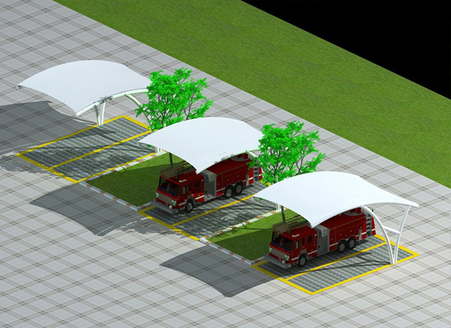 漢川吊塔式異形鋼膜結(jié)構(gòu)停車棚,本項(xiàng)目采用前軟邊...