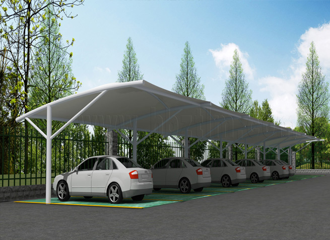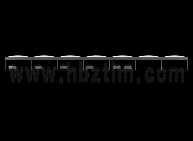 漢川吊塔式異形鋼膜結(jié)構(gòu)停車棚,本項(xiàng)目采用前軟邊...