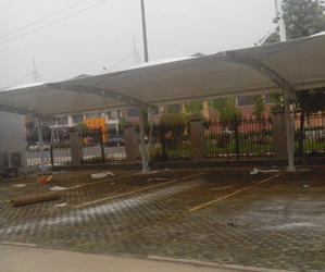 韶關(guān)質(zhì)監(jiān)局異形鋼平弧膜結(jié)構(gòu)停車棚?,本項(xiàng)目采...