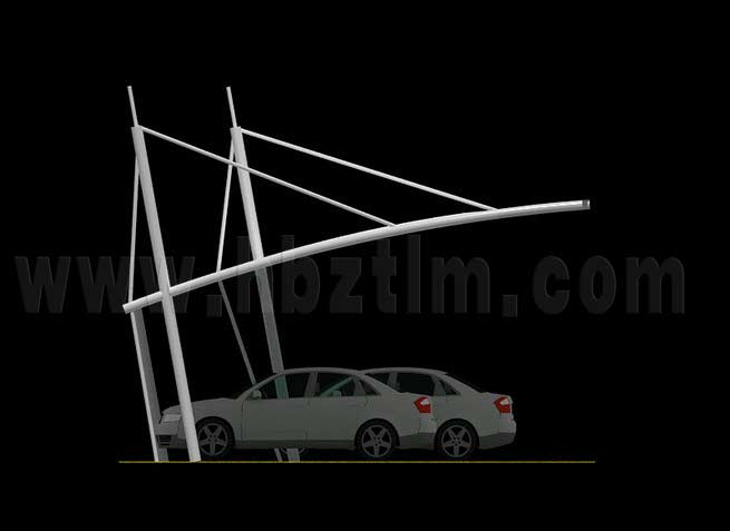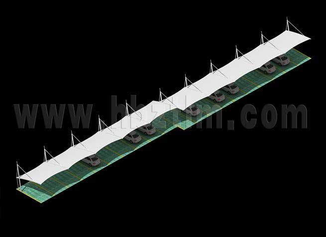 漢川吊塔式異形鋼膜結(jié)構(gòu)停車棚,本項(xiàng)目采用前軟邊...