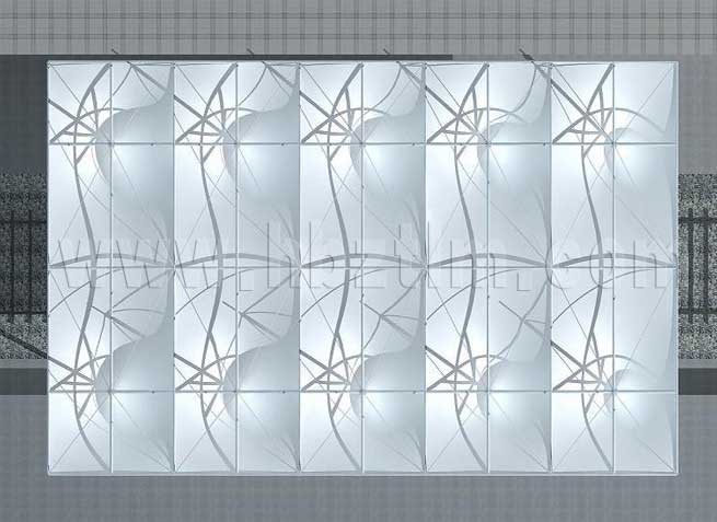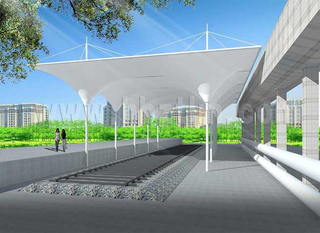 膜材采用PVDF國產(chǎn)或者進(jìn)口建筑膜材、PTFE玻璃纖維建筑膜材、ETFE透明的永久性建筑膜材;自動(dòng)放樣裁剪,高頻焊接,拉伸效果超強(qiáng),曲線成型可千變?nèi)f化;膜材質(zhì)保一般可達(dá)15-20年。