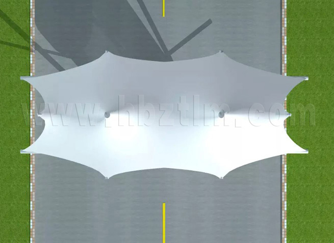 膜材采用PVDF國產(chǎn)或者進口建筑膜材、PTFE玻璃纖維建筑膜材、ETFE透明的永久性建筑膜材;自動放樣裁剪,高頻焊接,拉伸效果超強,曲線成型可千變?nèi)f化;膜材質(zhì)保一般可達15-20年。