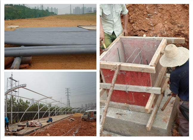 圖1 昌弘源機(jī)械高爾夫發(fā)球臺(tái)膜結(jié)構(gòu)鋼結(jié)構(gòu)現(xiàn)場(chǎng)施工圖