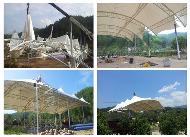 圖3 江西南昌風(fēng)景區(qū)網(wǎng)球場(chǎng)頂棚膜結(jié)構(gòu)完工成品圖照片