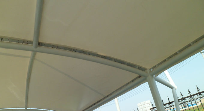 湖北美味源公司吊塔式圓管膜結(jié)構(gòu)自行車車棚,本項(xiàng)目采用前軟邊后硬邊張拉形式,結(jié)構(gòu)由立柱、拉桿、挑梁、橫桿構(gòu)成,其挑梁和中間橫桿一般采用弧管形式,美觀而不積水且抗負(fù)荷能力強(qiáng);膜材采用ZZF白色建筑膜材,15年質(zhì)保,整體結(jié)構(gòu)美觀實(shí)用,經(jīng)濟(jì)牢固,臻至完美。