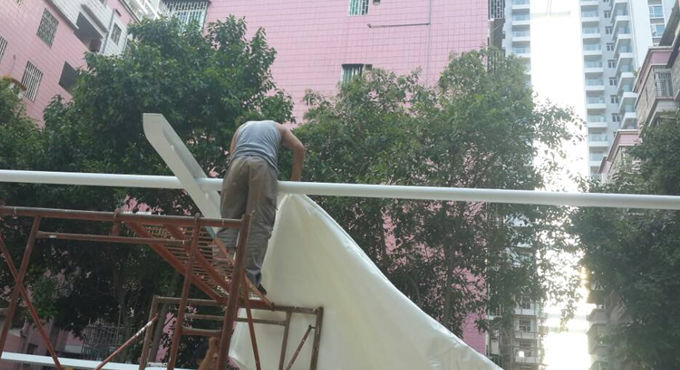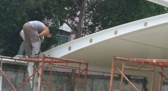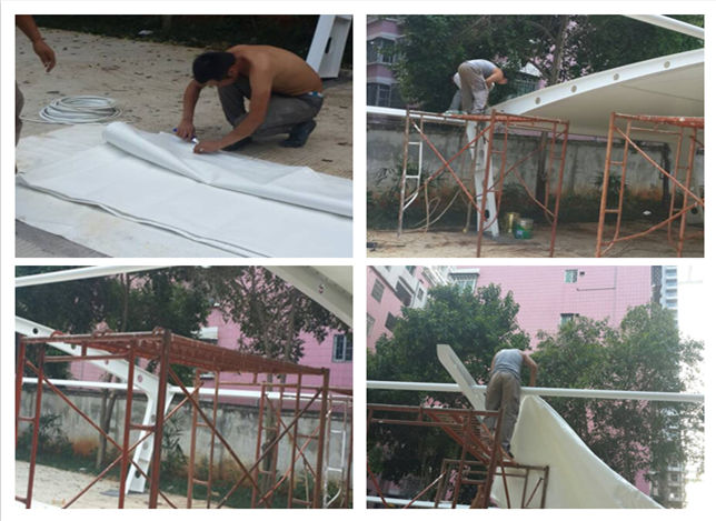 圖1 韶關市氣象局膜結構車棚現(xiàn)場施工圖