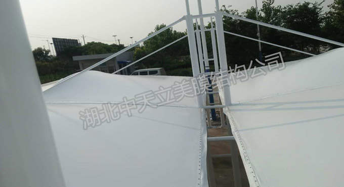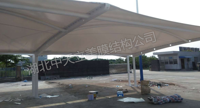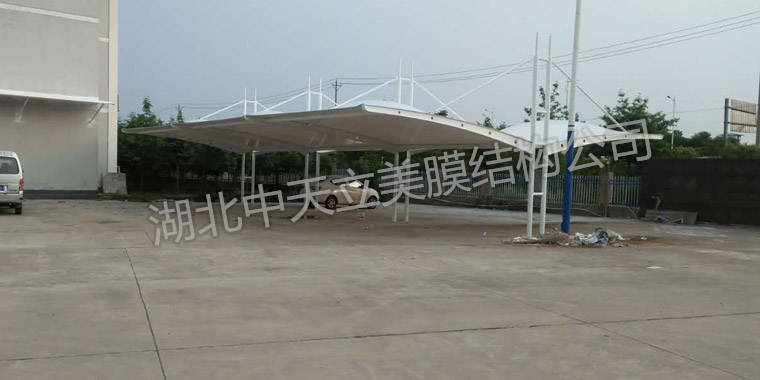 湖北泰盟電氣公司與中天立美膜結(jié)構(gòu)公司簽訂膜結(jié)構(gòu)車棚及膜結(jié)構(gòu)自行車棚項目,這次膜結(jié)構(gòu)車棚客戶選用雙挑異型鋼吊塔式膜結(jié)構(gòu)車棚樣式,整體造型美觀,大方,實用,是很多客戶首選車棚樣式之一。
