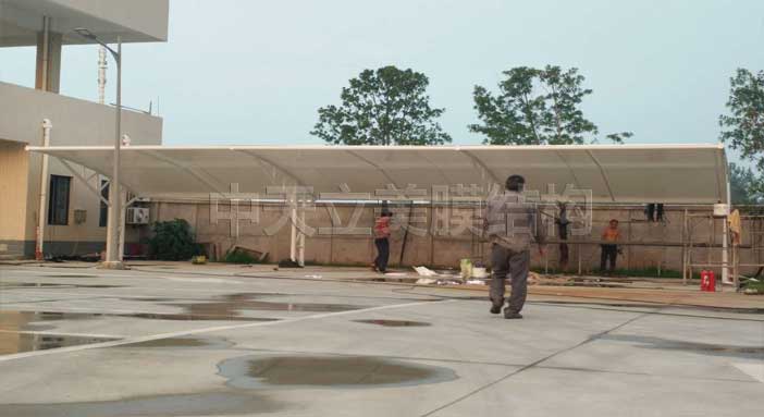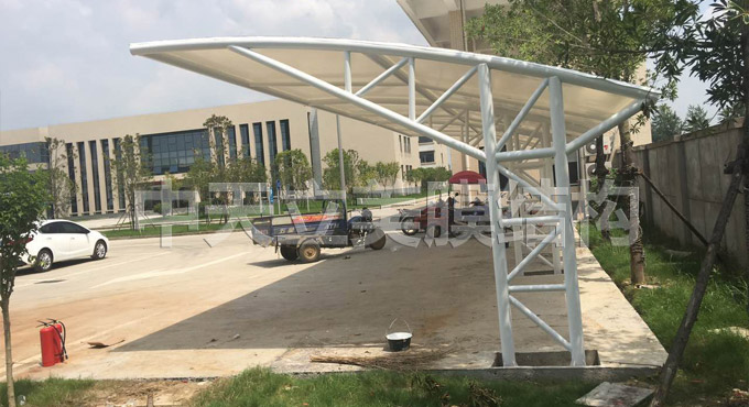 本次仙桃機場膜結(jié)構(gòu)車棚自行車棚采用的是孤管雙立柱造型,該造型牢固耐用,而且造型很美觀,大方,可作為自行車棚首選樣式。