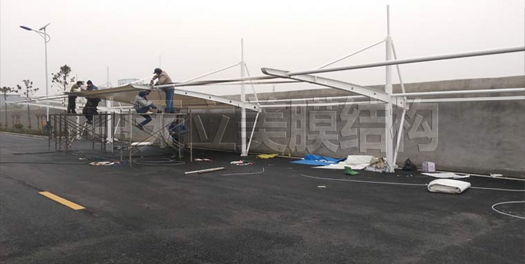 荊州奇異鳥公共紡織品服務(wù)公司膜結(jié)構(gòu)自行車棚