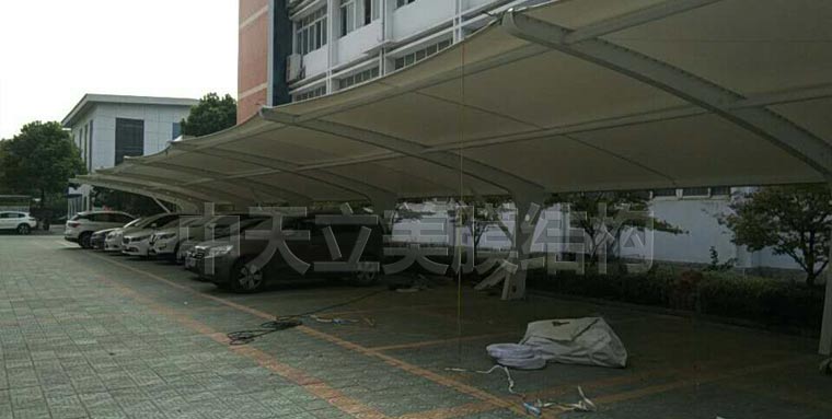 荊州江陵縣實(shí)驗(yàn)高中與中天立美膜結(jié)構(gòu)公司簽定膜結(jié)構(gòu)停車(chē)棚項(xiàng)目已順利完工,驗(yàn)收合格交付給客戶(hù)。