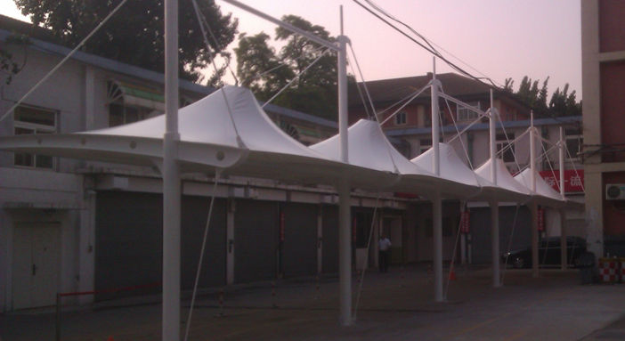 ?韶關(guān)始興氣象局異形鋼L型膜結(jié)構(gòu)停車棚,本項(xiàng)目采用前軟邊后硬邊張拉形式;結(jié)構(gòu)由立柱、拉桿、挑梁、橫桿構(gòu)成,其挑梁和中間橫桿一般采用異形鋼挑梁形式,美觀而不積水且抗負(fù)荷能力強(qiáng);膜材采用ZZF白色建筑膜材,15年質(zhì)保,整體結(jié)構(gòu)美觀實(shí)用,經(jīng)濟(jì)牢固,臻至完美。
