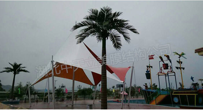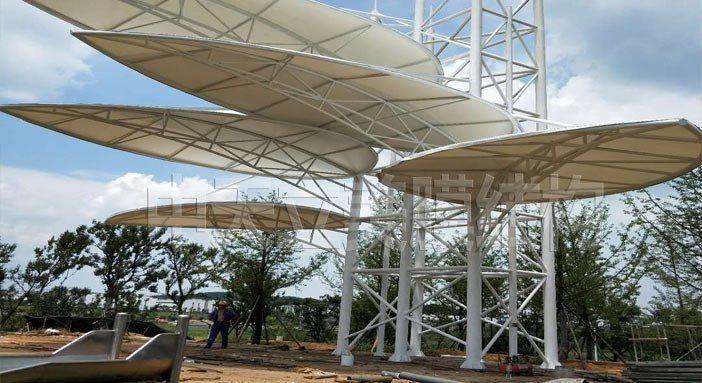 中天立美膜結(jié)構(gòu)公司隨州廣水市公園張拉膜施工,公園兩處地方,一共做了兩個造型不一樣的小景觀張拉膜,為公園增加一道亮麗風(fēng)景.