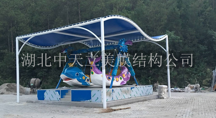 十堰市櫻桃小鎮(zhèn)親子樂園迷你飛車頂棚膜結構鋼結構現(xiàn)場施工圖膜結構施工圖完工圖