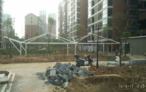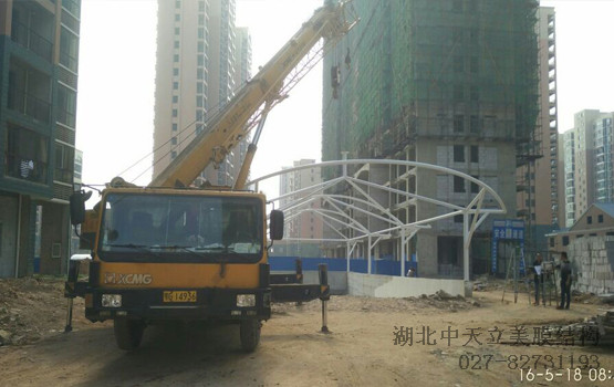 這次鄂州工程總面積有1000多個(gè)平方米,共做了三個(gè)小區(qū),6個(gè)小區(qū)停車庫(kù)出入口膜結(jié)構(gòu)。