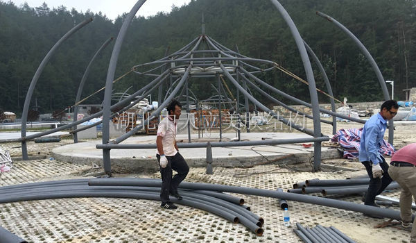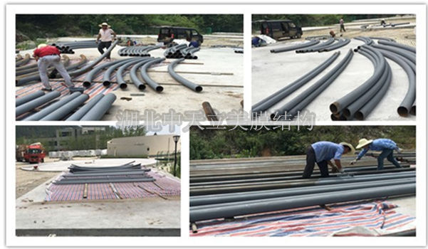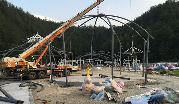 十堰櫻桃小鎮(zhèn)親子游樂園膜結(jié)構(gòu)選擇與湖北中天立美公司合作游樂園頂棚膜結(jié)構(gòu)項(xiàng)目!本次合作游樂園頂棚膜結(jié)構(gòu)項(xiàng)目合作面積達(dá)1250平方,一共要做六個(gè)造型各異的膜結(jié)構(gòu)頂棚。下面中天立美小編就去十堰親子游樂園現(xiàn)場去看看工程進(jìn)度,為工程人員施工現(xiàn)場情況做個(gè)簡單的現(xiàn)場介紹。