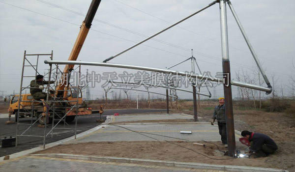 圖5荊州江陵膜結(jié)構(gòu)車棚施工照片